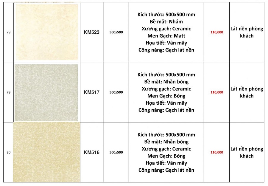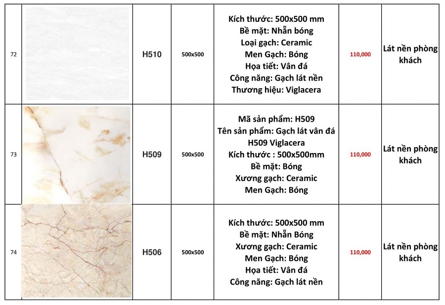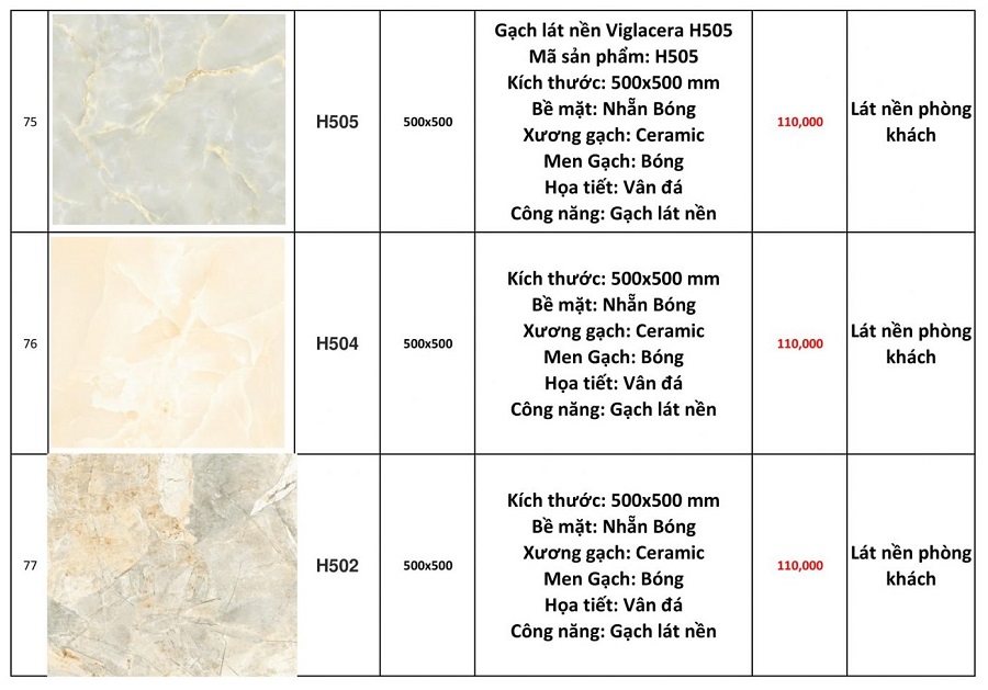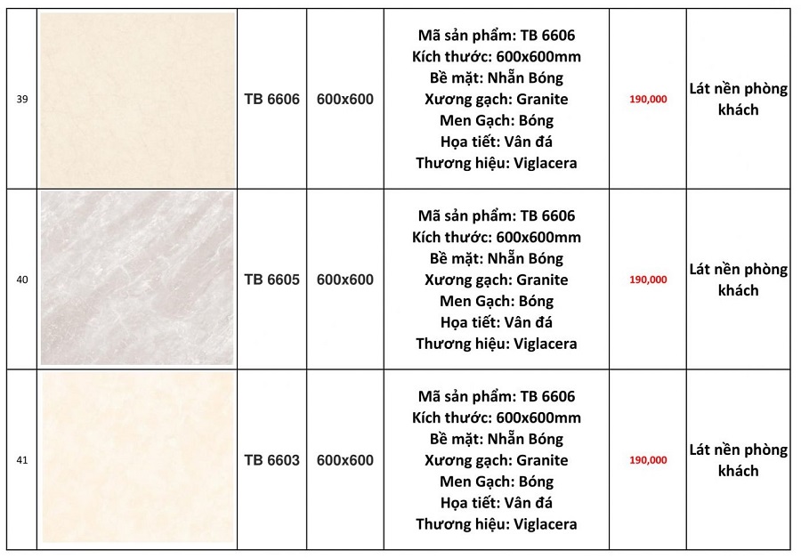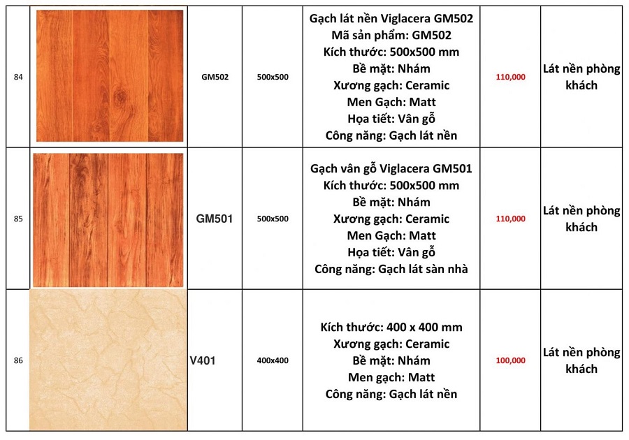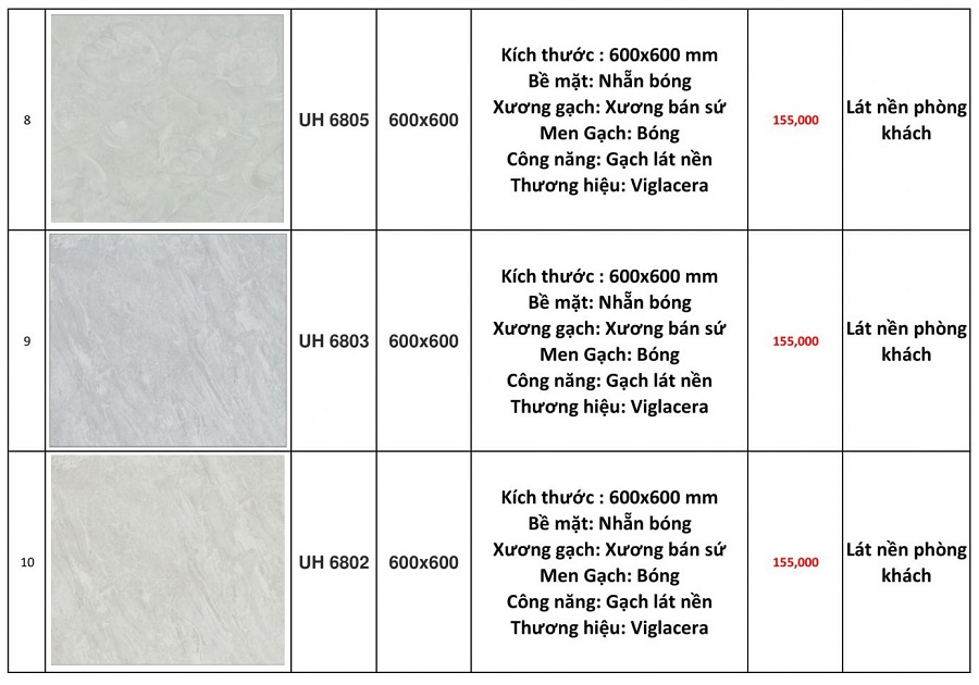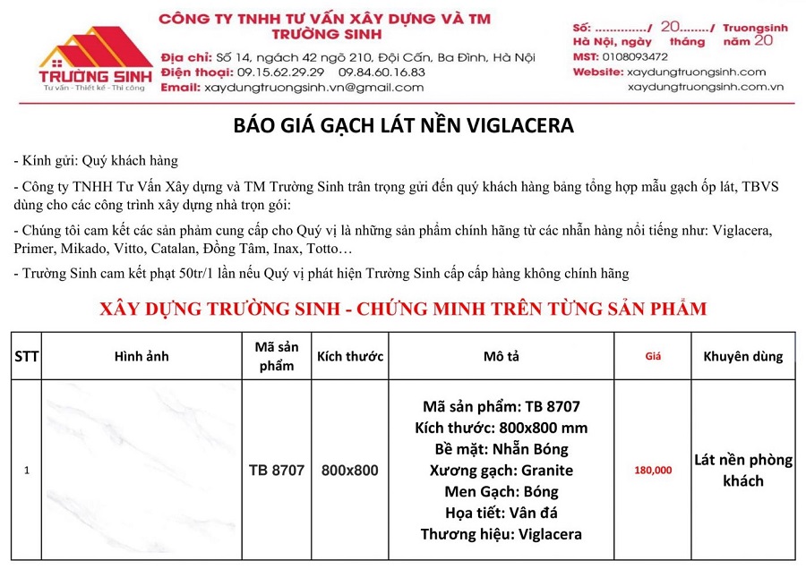 Dưới đây là báo giá gạch ốp lát nền Viglacera 60x60 tại Trường Sinh: