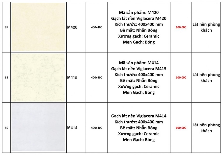 Báo giá gạch ốp lát nền Viglacera 40x40
