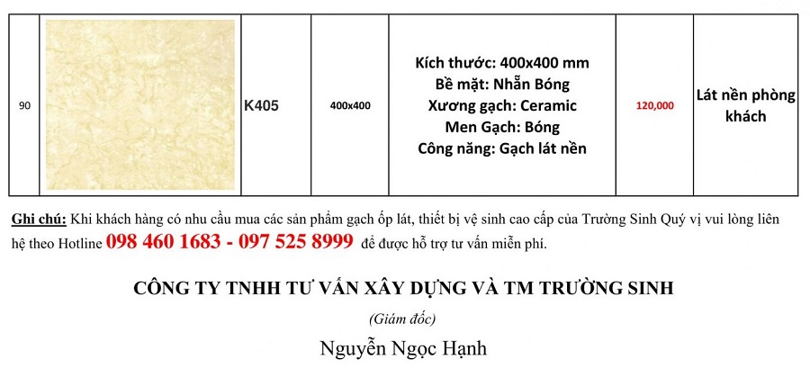 Nếu bạn đang tìm báo giá gạch lát nền Hà Nội để xây nhà, sửa nhà hoặc hoàn thiện công trình, dưới đây là bảng giá cập nhật mới nhất từ tổng Trường Sinh - đơn vị phân phối chính hãng tại Hà Nội với giá tại kho, rẻ hơn showroom từ 10 - 30%.